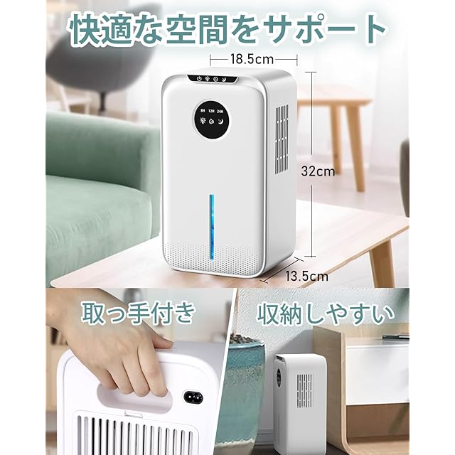 【小型・軽量で持ち運び簡単】サイズは32×18.5×13.5cm、重さ約2kg。クローゼット、玄関、浴室、脱衣所、子供部屋、キッチンなどの狭い空間にもぴったり。適用面積:約3〜15畳。