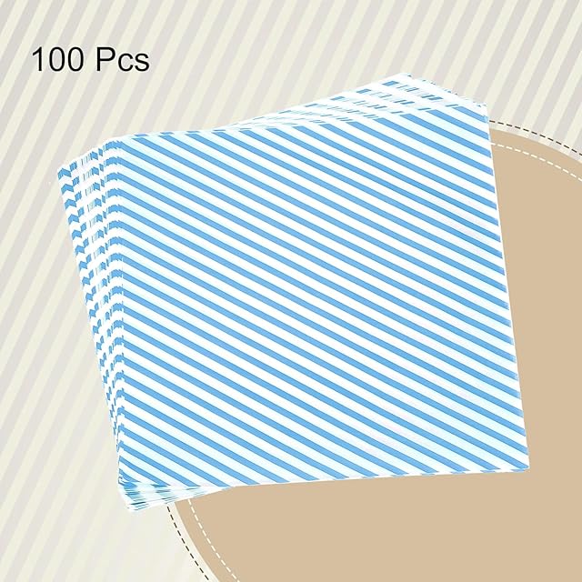 uxcell 100枚 正方形ストライプワックスペーパーシート11.81" x 11.81" オイル吸収ドライフード包装ペーパー サンドイッチ用焼き紙ライナー ピクニックバスケット パン ハンバーガーラップ キッチン ブルー