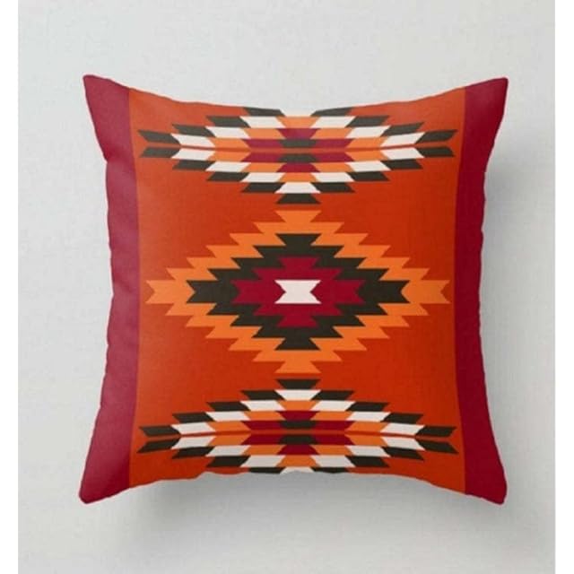 商品名:YunJeude クッションカバー 45x45cm 北欧 4枚セット おしゃれ 可愛い 民族柄 リネン 亜麻 ネイティブ オルテガ柄 幾何学模様 ファスナー インテリア (4枚組C-両面同じ柄, 45x45)
