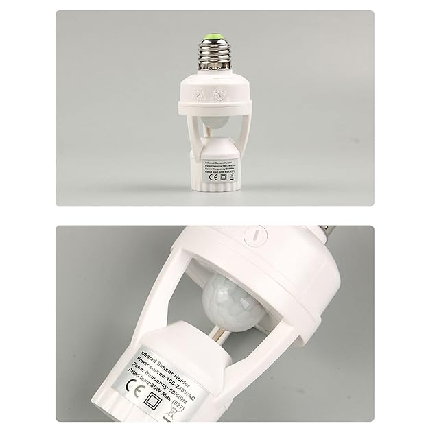 1.多機能:誘導調整をサポート、10〜300秒の遅延時間、光感度を調整可能、6メートルの感知距離、高感度。<br/>2.自動制御:赤外線センサーランプヘッドを使用すると、自動的にライトが点灯します。インターネットに接続する必要がなく、他の機器を接続する必要もありません。<br/>3.センサーライト:移動物体を識別し、電球スイッチを制御でき、日中は電球を消し、夜間は誘導照明機能をオンにします。<br/>4.幅広い用途: E27 ネジランプと互換性があり、既存の電球ソケットに直接取り付けることができ、地下室、ガレージ、ワードローブ、物置、階段、またはフロントポーチに使用できます。<br/>5.簡単な取り付け: モーション ライト ソケット アダプターを既存の電球ソケットにねじ込み、電球をランプ ホルダーのもう一方の端にねじ込むだけです。<br/><br/>仕様:<br/>アイテム タイプ: E27 センサー ライトソケット<br/>材質:ABS<br/>遅延時間:10~300秒<br/>感知距離:約 6 メートル/19.69 フィート<br/>定格電圧: 100~240 V<br/><br/>