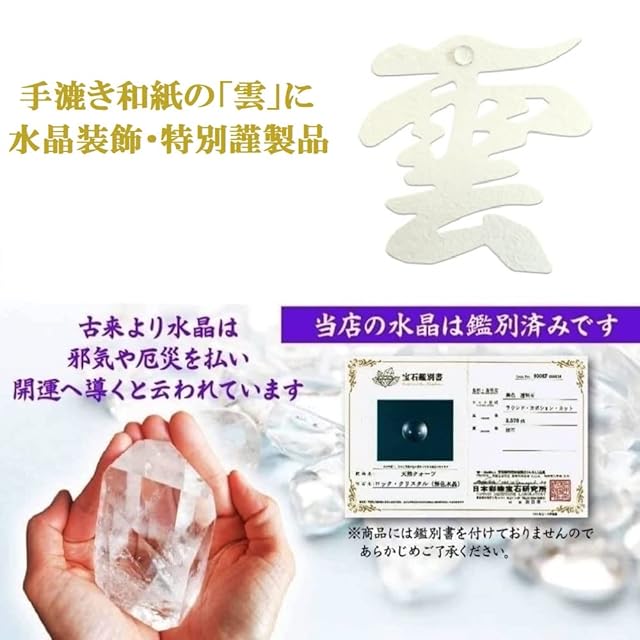商品名:さくら禅 雲 雲字 雲切 神棚 神具 仏壇 仏具 ( 手漉き 和紙 ) 12×12cm 雲切り 文字 最高級品 日本製 簡単設置 接着粘土付き (手漉き和紙 水晶装飾)