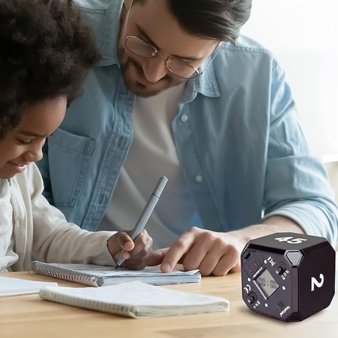 使いやすいタイマー - Time Cubeの希望の時間面を上にして置くと、カウントダウンが始まります。一時停止機能とカウントダウン再開があり、使いやすいタイマーです。