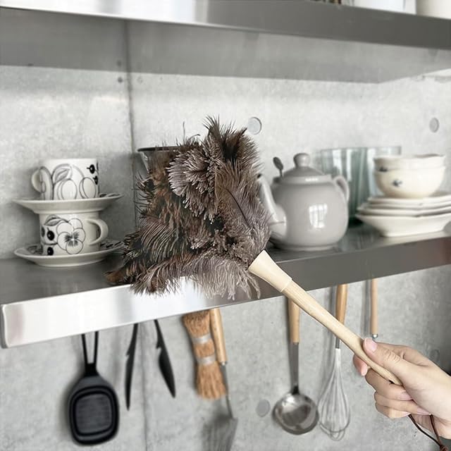 the reset オーストリッチ羽根はたき - ブラックダチョウの毛でほこり取り、部屋と車の掃除に最適なハンディモップ