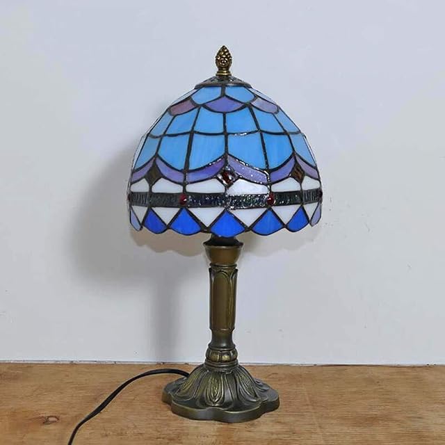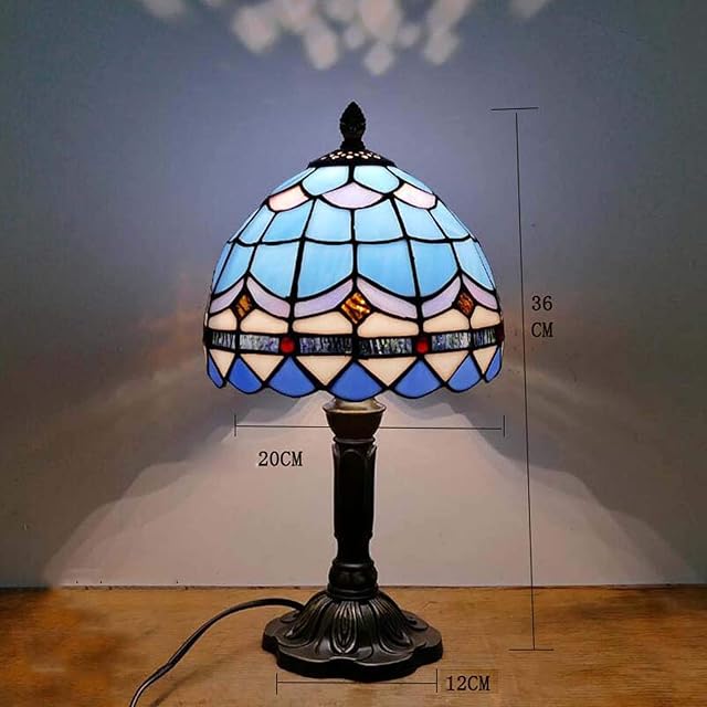 ティファニースタイルのヴィンテージステンドグラスデスクライト地中海風テーブルランプ照明寝室のリビングルームダイニングルームテーブルランプ、ブルー(20 * 36cm)