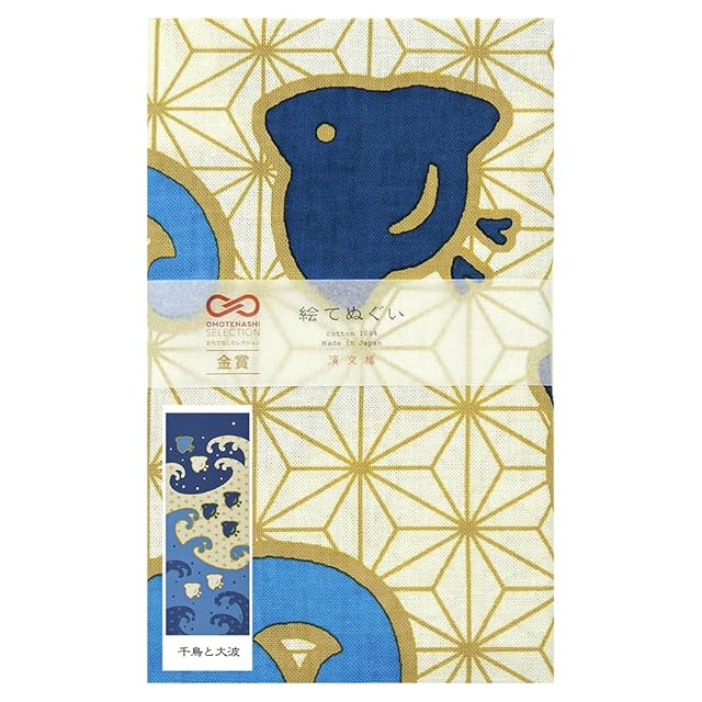 【千鳥と大波】<br> 千鳥と大波をモチーフに描きました。<br> 和モダンながら、千鳥の顔が可愛らしい絵柄です。<br> <br> 【絵てぬぐい】<br> 1枚の絵としてお飾りいただける「絵てぬぐい」は、<br> てぬぐいとしてはもちろん、季節感あふれるインテリアとしても好評です。<br> 横浜の粋と遊び心を持つ濱文様らしさに溢れた「絵てぬぐい」を是非お楽しみください。<br> <br> ◆素材:綿100% (厳選した木綿生地を採用しています)<br> ◆サイズ:約34cm×90cm (布の伸縮により多少の誤差があります)<br> <br> 【製品仕様】<br> ・横浜伝統の型染め手法である ”捺染 (なっせん)” でお作りしています。<br> ・柄のプリントは片面 (表) のみとなっております。<br> ・端を縫わない ”切りっぱなし” 仕様の、昔ながらのてぬぐいです。<br> ・ほつれは自然と止まりますので、適宜ハサミでカットしながらお使いください。<br> <br> 【注意事項】<br> ・色合いはご覧頂く環境によって印象が異なる場合があります。<br> ・濃色は色落ちする場合がありますので、単独での手洗いを推奨しております。<br> ・塩素系漂白剤はご使用にならないようお願いします。<br> ・濡れたまま重ね合わせたりすると色が滲む場合がありますのでご注意ください。<br> ・素材の特性上、洗濯をすると多少縮みます。<br> ・額装する場合は水通しせず、アイロンと霧吹きでシワを伸ばしてお飾りください。<br> <br> 【ブランド】<br> 横浜のテキスタイルブランド「濱文様」(はまもんよう) は、<br> 横浜伝統の型染め手法である ”捺染 (なっせん)” で染め上げた色あざやかな「てぬぐい」や<br> 風呂敷・タオル・ハンカチなどを中心に、数多くの和雑貨を企画・製造・販売しています。<br> <br> 遊び心のある個性的なデザインが特徴で、<br> 四季折々の風情を感じさせるオリジナルデザインを発信し続けています。<br>