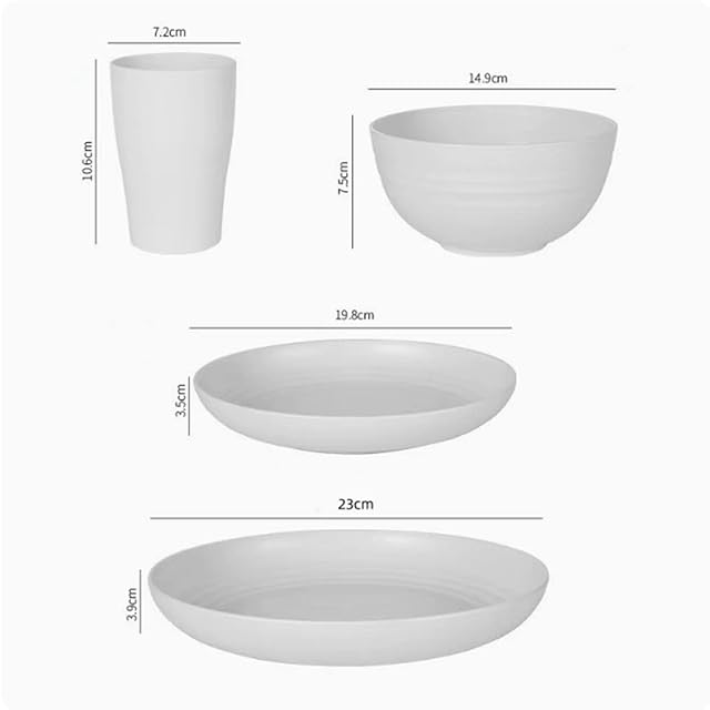 Fcliqzod888 16個の割れない小麦わら食器セット、再利用可能な食器セット、軽量電子レンジ食器洗い機対応、プレート、カップ、ボウルRVキャンプピクニックキッチン寮用