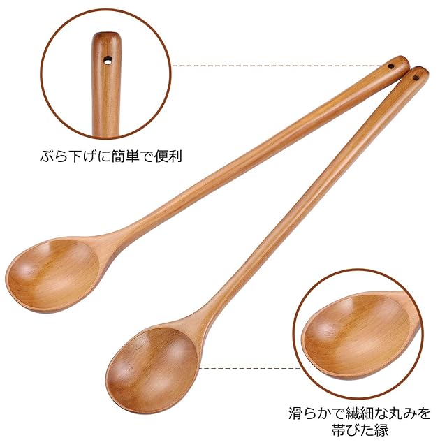 【高品質・天然木】この長い柄の調理用スプーンは環境にやさしい天然木でできています。