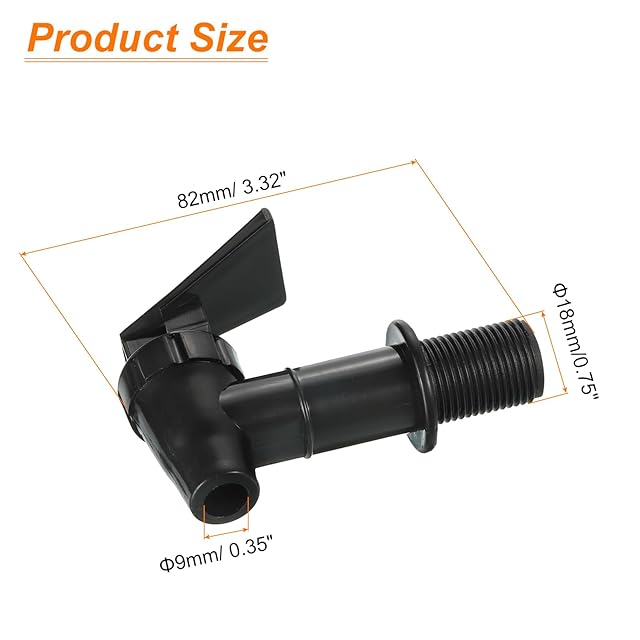 サイズ:全長:82mm/3.32";取り付け外径:18mm/0.75";出口内径:9mm/0.35";3/4"の穴に適合します。ご購入前にサイズをよく比較して、水タンクとの互換性が良好であることを確認してください。