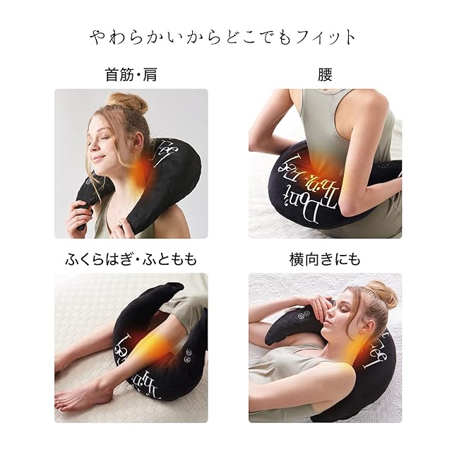 【やわらかいからどこでもフィット】ふわふわの三日月みたいなフォルムは、カラダのどこでにでもフィットするためのカタチです。