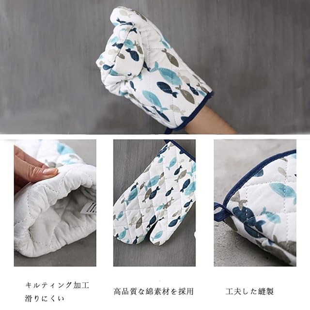 【材質】ミトン表地/裏地:綿100% 先染めで色落ちない環境にやさしい ミトン中綿:8mmの厚て、断熱効果強い キルティング加工で、ずれないし、滑りにくいミトン。本体と同色の生地でトリミング縫製して、色差がなし、縁が綺麗に出来上がる耐熱鍋つかみ