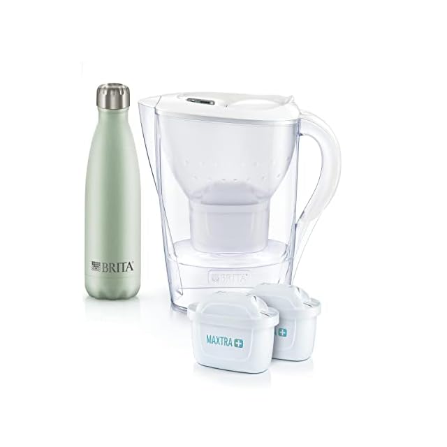 ブリタ 浄水器 ポット ろ過水容量:1.15L(全容量:2.4L) マレーラ COOL ステンレスボトル付 (グリーン)マクストラプラス カートリッジ 2個付き 【日本正規品】 ピュアパフォーマンス ホワイト