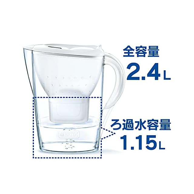 商品名:ブリタ 浄水器 ポット ろ過水容量:1.15L(全容量:2.4L) マレーラ COOL ステンレスボトル付 (グリーン)マクストラプラス カートリッジ 2個付き 【日本正規品】 ピュアパフォーマンス ホワイト