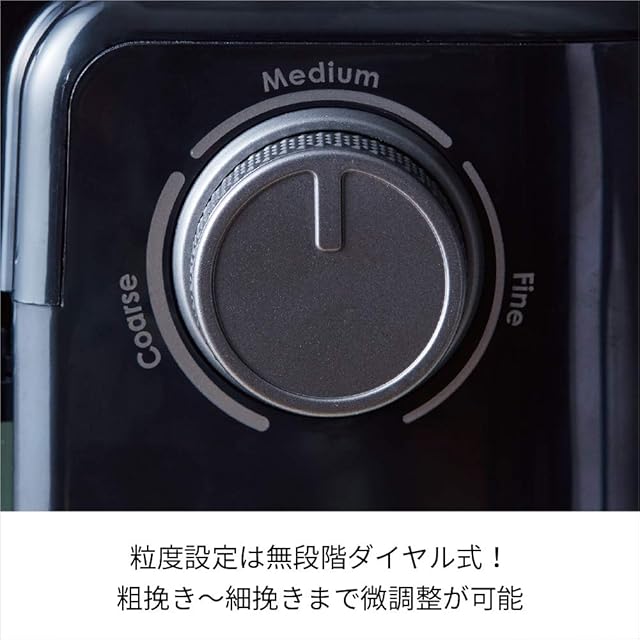 ✅[自分好みの挽き目&分量に]挽き目(粒度)も豆量も無段階のダイヤル式で調節できるので、自分好みの味にカスタムできます。