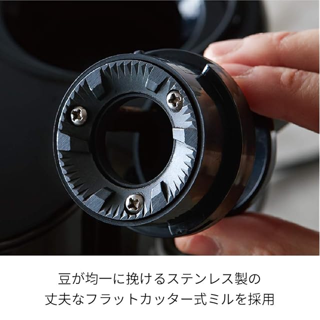 ✅[フラットカッター式ミルを採用]安価なプロペラ式ミルなどと比べて挽き目(粒度)のバラつきを抑えた均一な仕上がりになるため、コーヒー本来の味や香りを存分に引き出します。