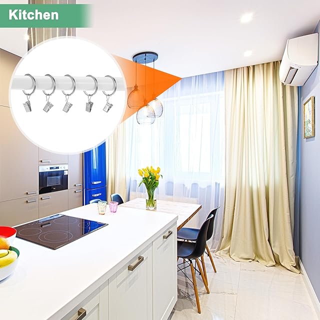 [多目的使用] - クリップ付き金属製カーテンリングは、ホテル、レストラン、バー、カフェ、会議室、寝室に適しており、どんな空間にも個性を加えます。