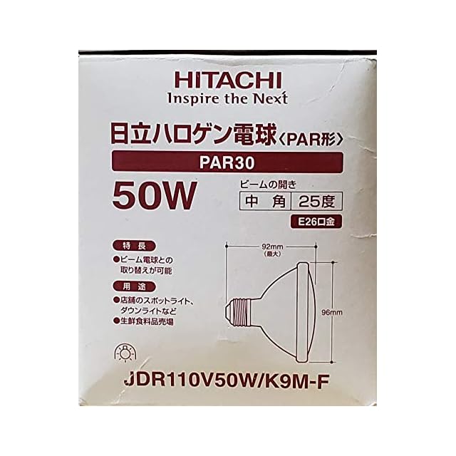 商品名:日立 ハロゲン電球 PAR形30 ビームの開き:25度 E26口金 JDR110V50W/K9M-F