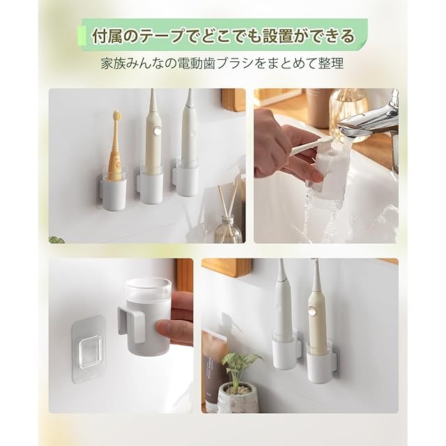 【多機能電動歯ブラシスタンド】粘着式テープが付属し、滑らかな壁や鏡に簡単に設置でき、洗面台のスペースを節約でき、いつでも取り外して洗浄できます。