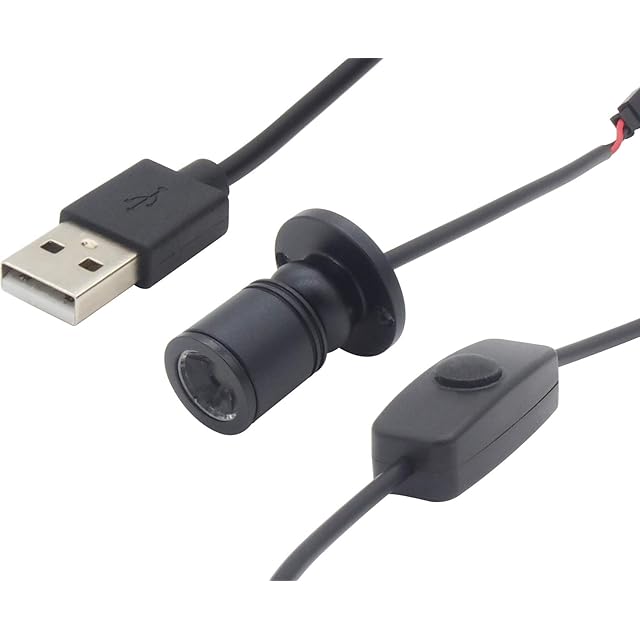 オーディオファン USB電源用 小型スポットライト USBタイプAプラグ用 電球色 LED (ウォームホワイト) ショーケース照明 バックライト 角度調節 光調節 (無段階調光) ブラック 約2m