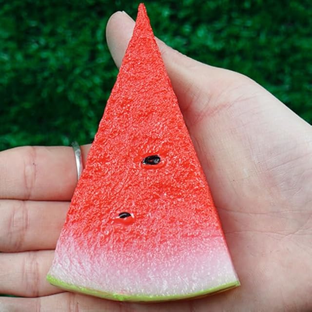 【 人工スイカスライス】リアルなシミュレーション 人工スイカプラスチック人工スイカスライス、ホームパーティーの写真小道具の装飾用の本物のようなスイカフルーツモデル。子供たちに果物についてもっと学ぶように教える幼稚園の優れた学習ツールになる可能性があります。