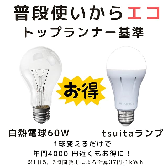 【電気代を節約】長寿命LED電球使用で、設計寿命約4万時間!毎日5時間使用したとすると、約21年も長持ちし経済的です。