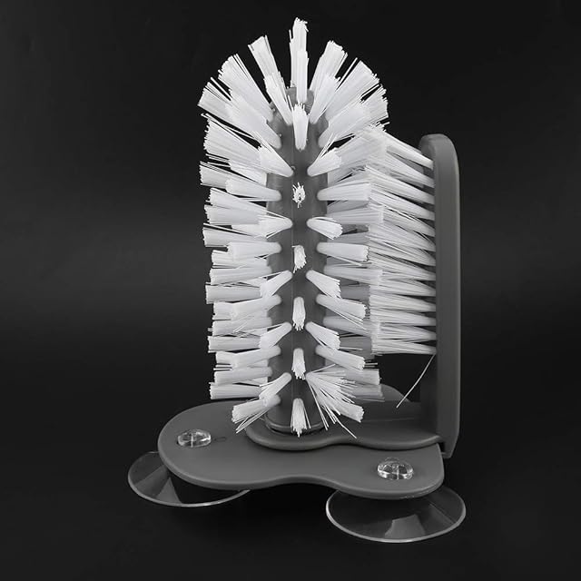【ダブルブラシ設計で 360 度全方位クリーニング】 両面にブラシを配置した構造により、カップやボトルをブラシの間に差し込むだけで、内側と外側を同時に洗浄できます。複雑な形状の部分も確実に掃除でき、手間を大幅に削減します。