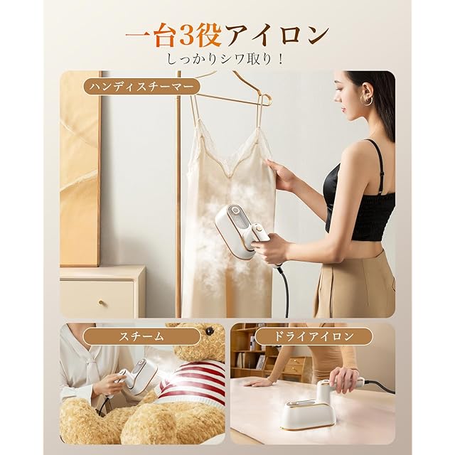 アイロン スチームアイロン 衣類スチーマー ハンガーにかけたまま ハンディ 小型 折り畳み式 iron あいろん パワフル連続スチーム シワ伸ばし 軽量 連続スチーム 除菌 脱臭 コンパクト ミニ ポータブル ハンディアイロン 150ml スタンド付き 家庭/出張/旅行
