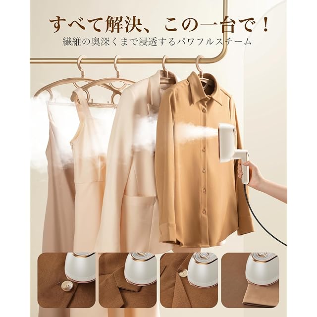 【パワフル・連続スチーム】コンパクトながら、瞬時に18g/分の強力なスチームを噴射してシワをしっかりと伸ばし、衣類のケアをより簡単にします。 約15秒で素早く立ち上がるので、お出かけ寸前でもストレスなく衣服を整えられます。 1回の給水で約10分連続スチームができる大容量水タンクを搭載しております。 シャツやジャケットのお手入れも簡単に行えます。