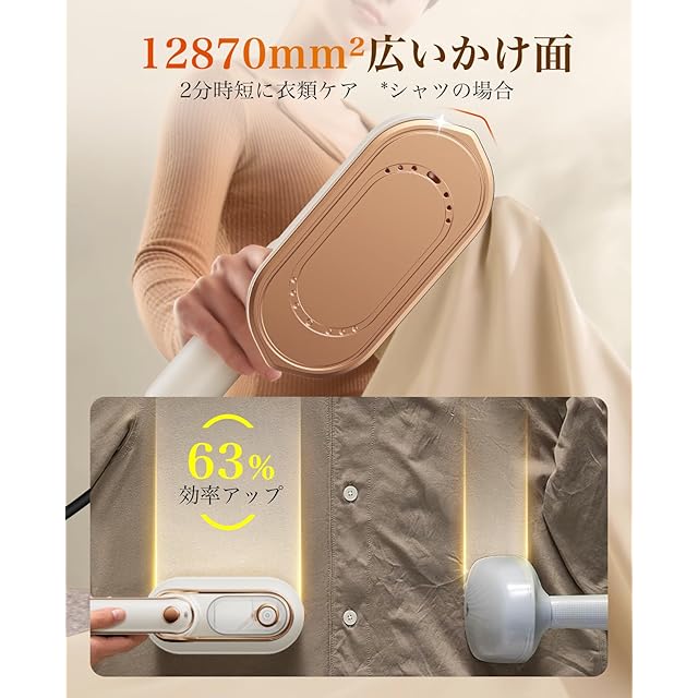 【軽量でコンパクト】小型アイアンは人体工学に基づいて設計されており、特に回転ハンドルの握りやすさにこだわっています。水タンクが下部に配置されているため、全体の重心が低く、手の力の弱い女性でも楽に使うことができます。ボタンをワンプッシュで約8分間の連続使用が可能で、押し続ける必要がはありません。低重心設計により、手にしっくりと馴染む心地よい握り心地が実現されています。さらに、ハンドルを折りたたむと手のひらサイズにコンパクトになり、収納や持ち運びにも非常に便利で、スペースを効率よく活用できます。
