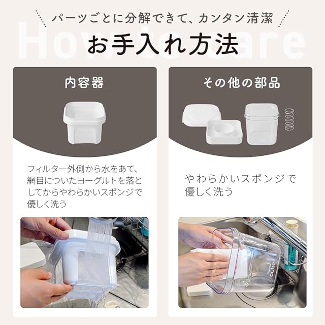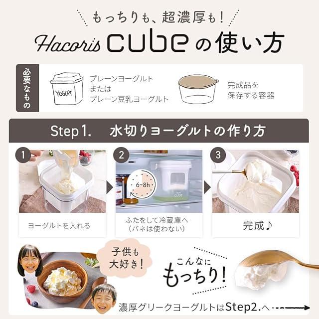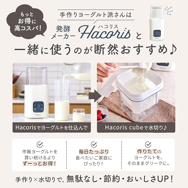 【Hacoris CUBE】水切りヨーグルトメーカー 濃厚グリークヨーグルト バネ付き | 約1L 簡単 お手入れ 自家製 ギリシャヨーグルト | モノエルナチュリ