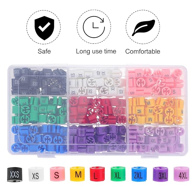商品名:ibasenice 衣類ハンガーサイズマーカー プラスチック 衣類ハンガー 色分けサイズタグ 9色サイズ ハンガーマーカー カラー マーカーアソートキット 450個 (XXS-4XL)