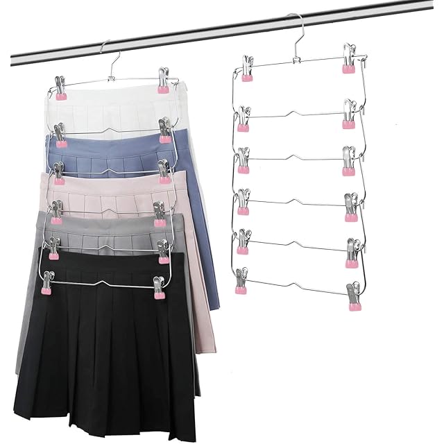スカート、ズボン、スカーフなど6枚を1枚分のスペースで上手に収納可能です。