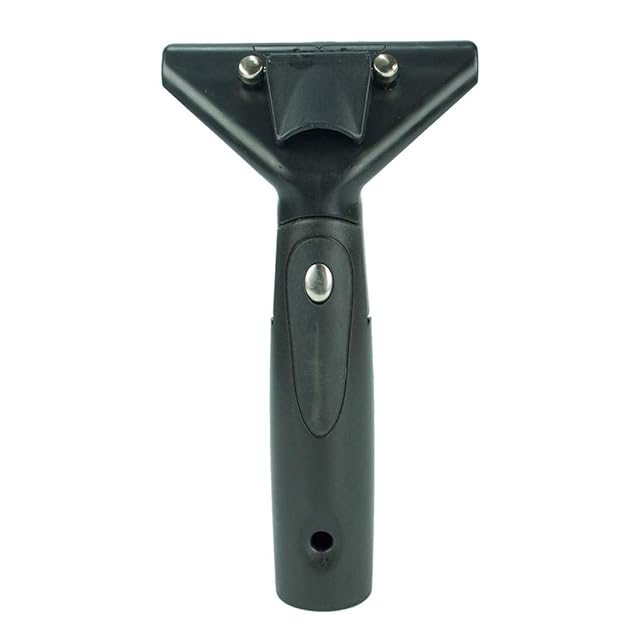 人の手が握り易いように設計されたハンドル(グリップ)です。ハンドルの首部が左右90度に曲がるので、延長ポールと接続して高所の窓を右から左へ(又は逆へ)水切りする時に便利です。クイック式なので正面のレバーを跳ね上げるだけで、チャンネルの脱着がワンタッチで出来ます。