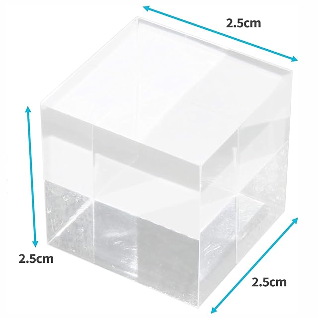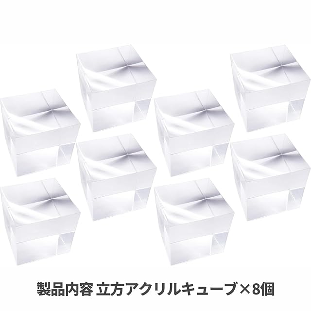 装飾品を乗せる台や自作の品をディスプレイする際の台としてご利用いただけるほか、キューブ自体を加工して成型するなどアイデア次第で様々な用途にご利用いただける立方のアクリル材です <br />製造工程の都合上、製品に傷がついている場合がございます。当製品は成型タイプのため、樹脂内部に気泡を含んでいたり、サイズに誤差の出ることがございます。材質 アクリル<br />製品サイズ 約2.5cm立方 18g/個<br />製品内容 立方アクリルキューブ×8個<br />期間 お届け日より1ヶ月