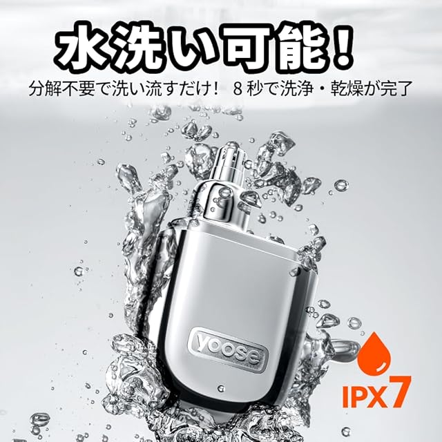 商品名:yoose ノーズヘアトリマー 鼻毛カッター エチケットカッター 充電式 IPX7 防水 両刃ブレード 軽量 コンパクト 携帯用 お手入れ簡単 水洗い可 大容量バッテリー 低音設計 等速回転 ギフトボックス N1-S