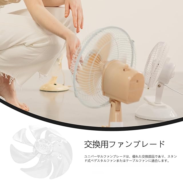 【交換用部品としての利便性】: ユニバーサルデザインの扇風機ブレードは、壊れた羽根の交換に最適で、スタンド式やテーブルファンに適合します。