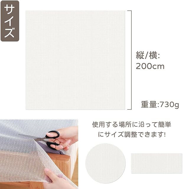 商品名:滑り止めシート<br> サイズ: 200cm x 200cm<br> カラー:ホワイト<br> 用途:直接カーペット、玄関マット或いはラグの下に敷いて完了です。<br> 製品特徴: 滑り止め効果抜群 吸音 自由カット<br> どのように洗うか:貼り付ける必要はありません。簡単に洗濯できます。優しく手洗いすることをお勧めします。繰り返して使えます<br> メーカーの説明:一年保证付<br>