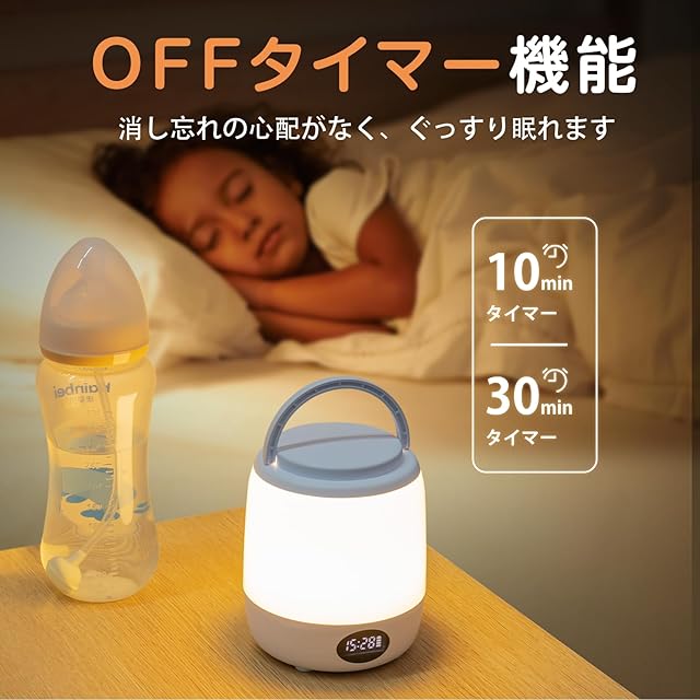 【調光調色・タイマー機能・リモコン付き】このベッドサイドランプは、上部を1回タッチするだけで2700K-6500K色温度が切り替わります。暖色系の光は目に優し、夜間の授乳やおむつ交換に適しております。タッチセンサーを長押しすると、弱い光から読書に十分な明るさまで調整できます。また、リモコンで遠隔操作でき、10/30分タイマー設定もできるので、手動消灯が不要、自然と消灯して眠りを妨げません。