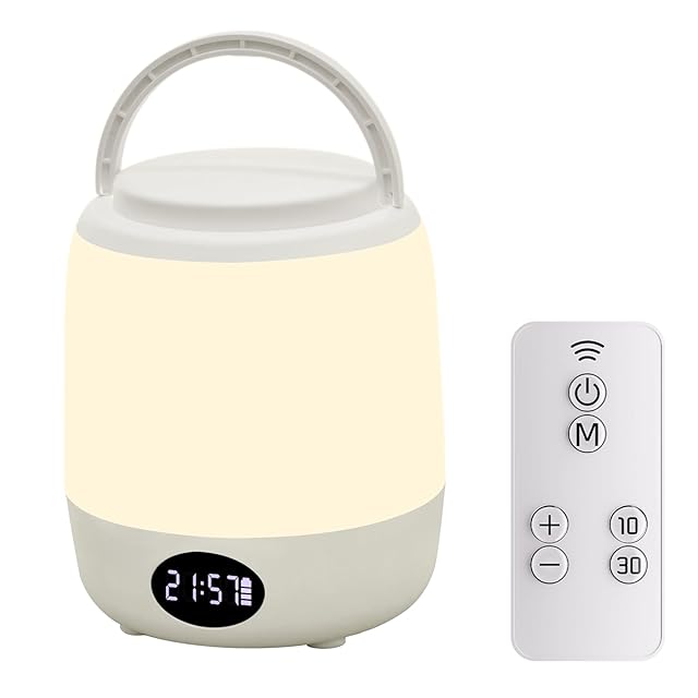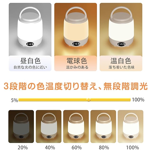 【時計・バッテリー残量表示】授乳ライト ベッドサイドランプ 調光調色 リモコン付き 充電式 タイマー付き 間接照明 記憶機能 持ち手 タッチ 寝室 常夜灯 吊り下げ ナイトライト テーブルランプ おむつ替え用/出産祝い/ギフト 目に優しい AOYIKO