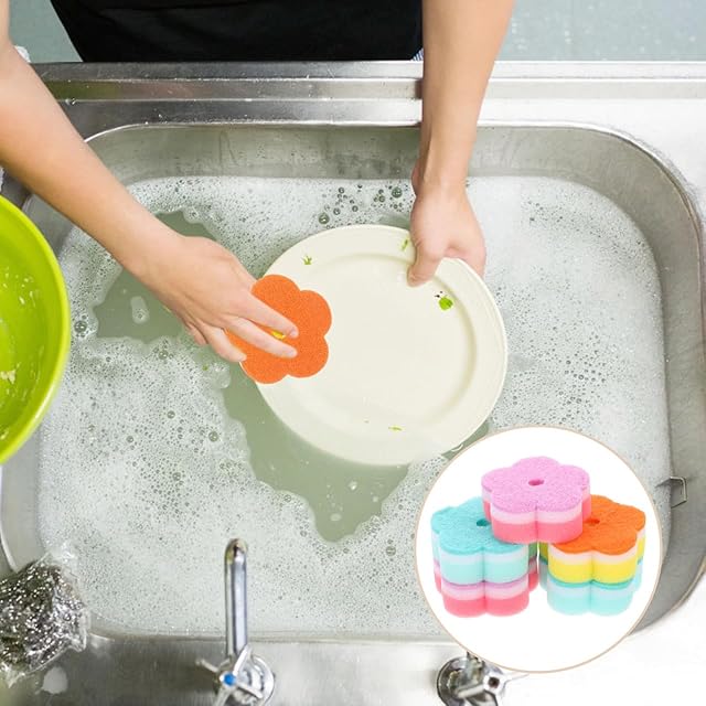 NOLITOY クリーニングスポンジ 食器洗い キッチン かわいい 花形 5個 スクラブスポンジ 再利用可能 家庭用 バスルーム用