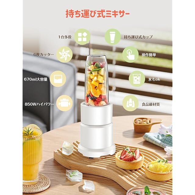 【新機種 女性に優しい】ミキサー ジューサー スムージー 大容量670mlボトル 850W ミキサー 小型 氷も砕ける 果物ジュース コーヒーミル 一台多役 蓋付き 介護食 離乳食 栄養補充 持ち運び 過負荷保護 お手入れが簡単 キッチン/アウトドア/オフィス 誕生日/お祝いのプレゼント Happilaff