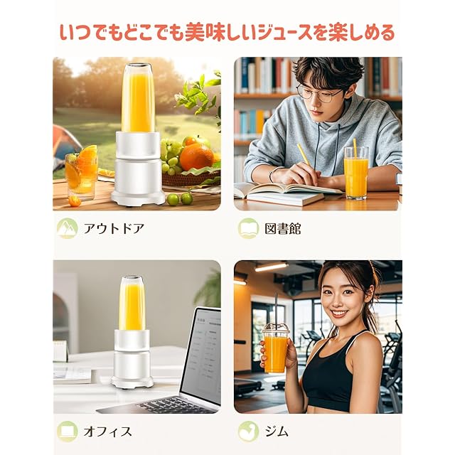 【立体の304ステンレス刃・操作簡単・安定感あり】304ステンレス製高強度波型6枚刃カッターを採用し、鋭い切れ味、時間と手間を賢く省く。野菜や果物はもちろん、氷や冷凍野菜もあっという間に細かく粉砕。余計な機能やスイッチはない、ロッグ以後ワンプッシュは稼働開始。誰でも簡単にジュースなどを作ることができ。忙しい朝にもしっかり栄養補給。足元は四つの吸盤あり、作業台にぴったりと貼り付き、底面の滑り止める。使用時も振動や騒音を軽減し、吸力が強いので安定感がある。