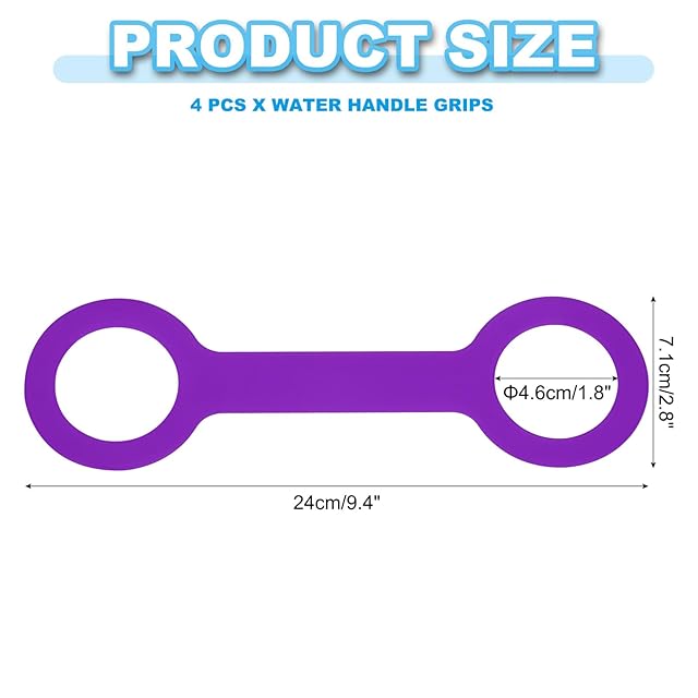 仕様: 材質: シリコン。カラー: パープル。内径: 4.6cm/1.8"。外径: 7.1cm/2.8"。長さ: 24cm/9.4"。厚さ: 3 mm/0.12"。500mlから1000mlのカップに適しています。梱包リスト: ウォーターハンドルグリッ プ4個。
