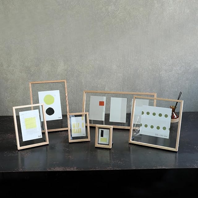 2枚のガラスで写真を挟む仕組みなので、写真立てとしてだけではなくお気に入りのポストカードや押し花をコラージュしても。