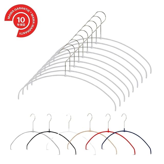 【 Economic light 42/PT 】<br/><br/> マワ社製すべりにくいハンガー<br/> 本体は丈夫なスチール製。表面は特殊ノンスリップコーティングの柔らかな材質で、衣類にやさしく、ハンガーからのずれ落ちを防ぐ<br/> 滑りにくいので屋外の洗濯干しハンガーとしても便利。<br/>とりこんだらそのままクローゼットにも入れられる! シルクやポリエステルなどのツルツルした素材や薄物も滑りにくい。<br/> 人体に近いカーブで掛けた衣類が型崩れしにくい。<br/>柔らかな素材やつるっとしたブラウスも肩が出てしまうことがなくキレイに収納 厚みもわずか5mmと薄くてかさ張らないのでクローゼットの中もスッキリ収納! <br/> しかも超軽量!!<br/> ハンガーの先が下にカーブしているから生地にやさしい<br/>
