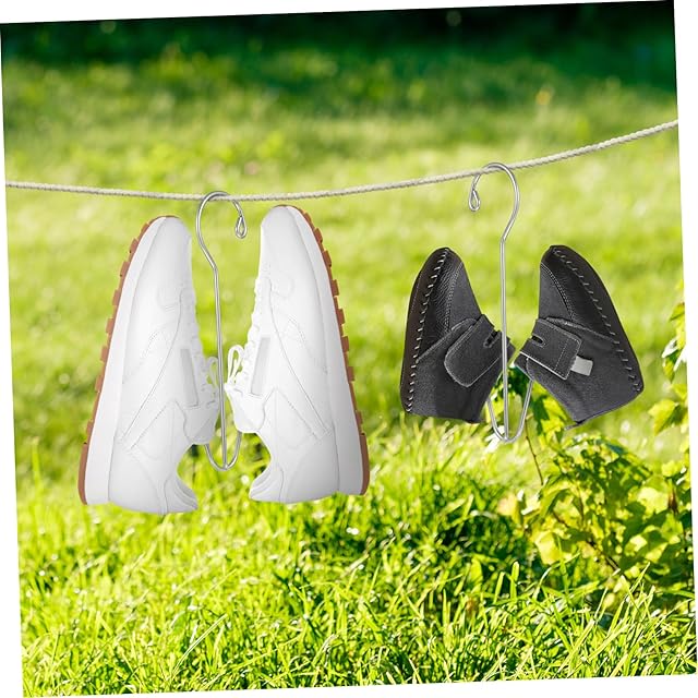 WINOMO シューズハンガー 靴乾燥ラック 靴ハンガーラック 吊り干し靴干しハンガー 防風 耐久性 ステンレス製 滑り止め 2本(銀色)
