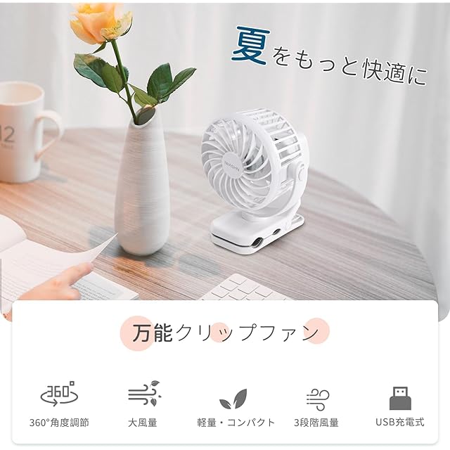 このファンはUSBとバッテリーの両方で動作し、3つの調節可能な風量があります。 USBポートや充電器で簡単に充電でき、内蔵の充電式バッテリーを長時間使用できます。 360度の角度調節で空気を通すことができ、静音設計なのでオフィスや寝室での使用もお勧めです。 安全を考慮し、小さなお子様のいるご家庭でも安心してご使用いただけます。