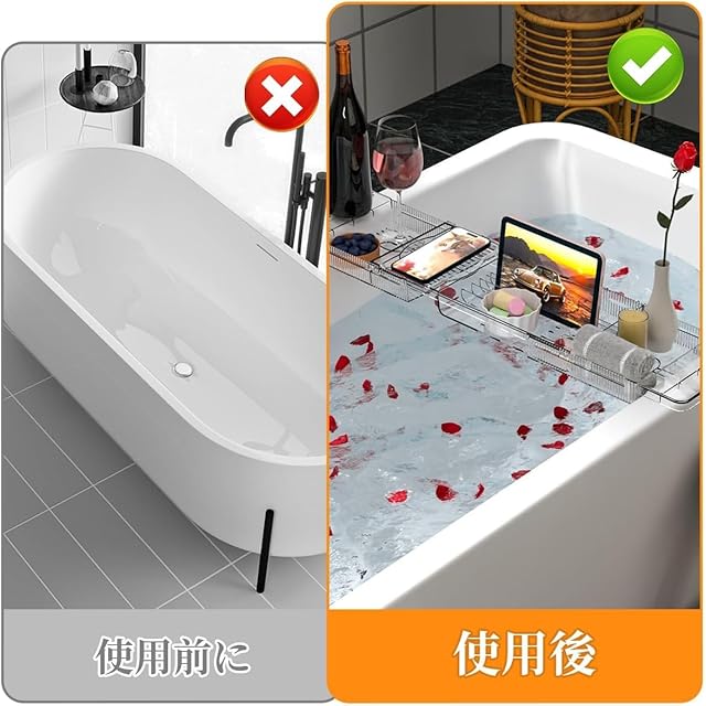 【ギフトに最適】:バスタブ用トレイは、バレンタインデー、母の日、感謝祭、結婚式などのギフトに最適です。マスターバスルームを引き立て、美学にマッチします。