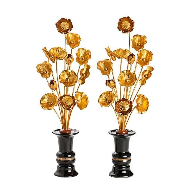 商品名:常花 仏花 常花セット お盆用品 蓮花 はすはな 仏具 ロータス 蓮 花びん付き 花立付き 左右一対 金メッキ 金色蓮華 仏壇 仏具 仏前 法事 法要 お盆 命日 飾り お彼岸 お花 お供え