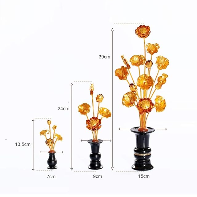 材質:アルミ、ABS樹脂、磁器(花びん本体) サイズ:40cm*16cm セット・内容: 蓮花*2 花葉本数:13本