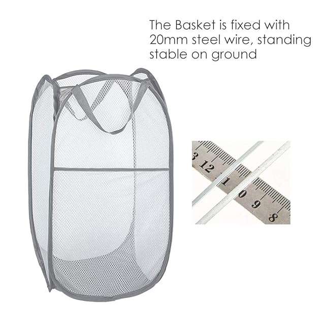 WD&CD ランドリーバスケット【2枚】 洗濯かご メッシュ ランドリー収納 汚れた衣類収納袋 大容量 雑貨収納 おもちゃ収納ボックス カゴ 壁掛け 折りたたみ 取って付き シンプル 収納袋(グレー)
